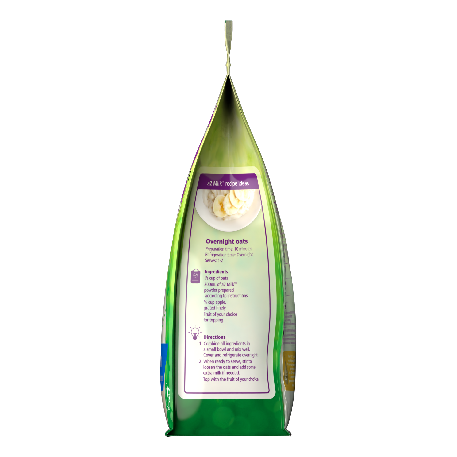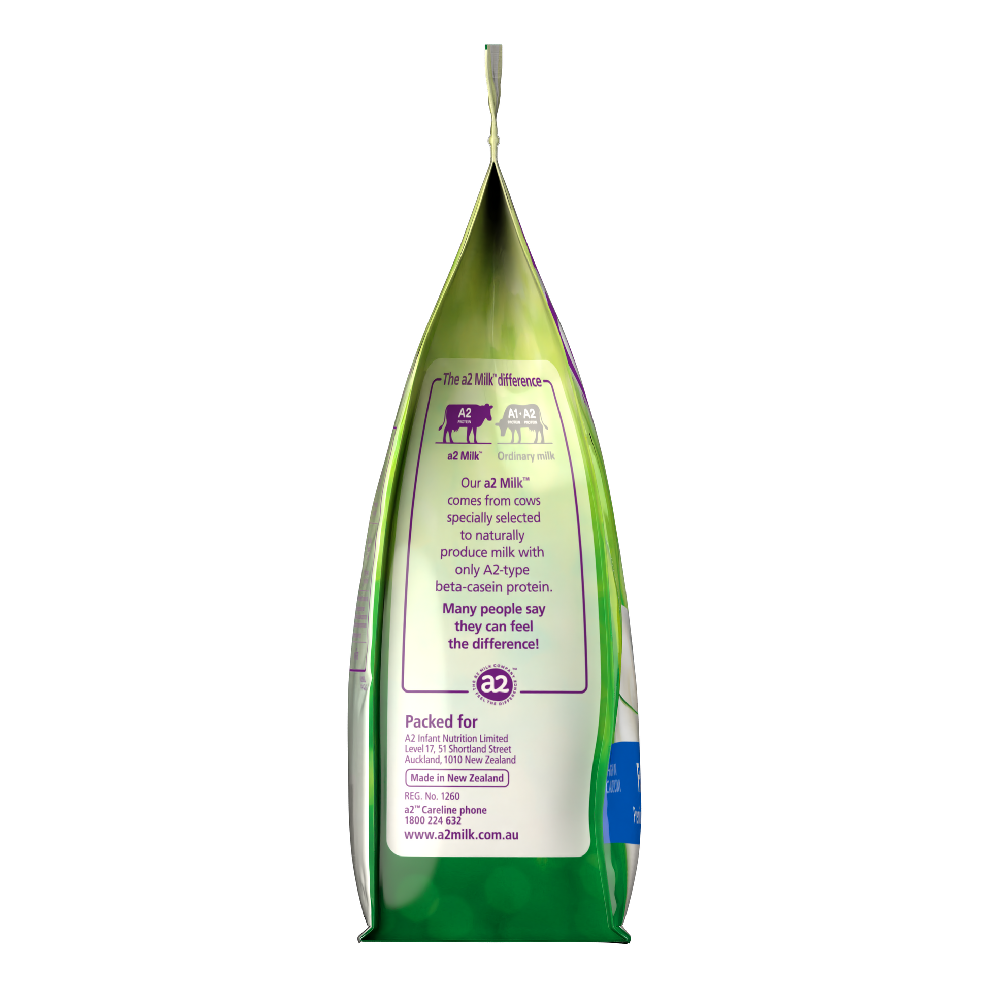 a2® Full Cream Premium instant milk powder, is made through a drying process where the water is removed from our fresh a2 Milk® Full cream. It is high in calcium and packaged in a resealable pouch.